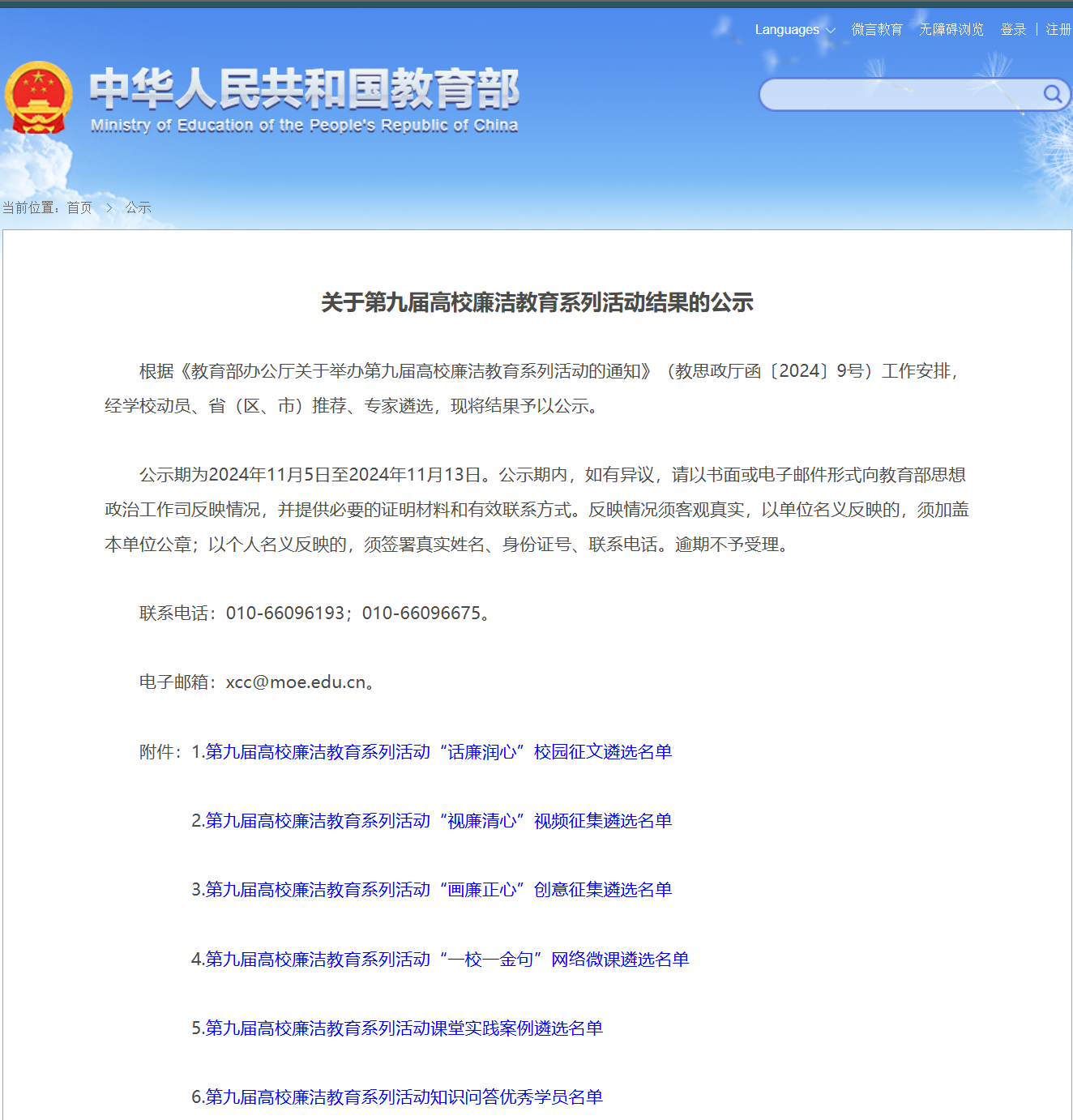 近日,由PP电子马克思主义学院制作、学校纪委选送的作品《让孝廉之风薪火相传》进入教育部组织的第九届高校廉洁教育系列活动之“一校一金句”网络微课公示名单。据悉,PP电子是全省网络微课入选的9所高校中的唯一一所高职院校。这是PP电子首个入选国家级项目的廉洁微课,更是学校全面从严治党、全面从严治校,扎实推动廉洁教育的标志性成果!