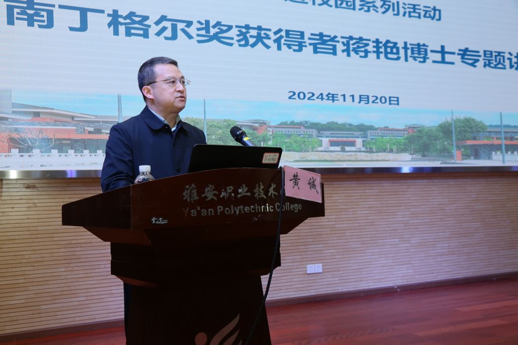黄诚在致辞中对蒋艳的到来表示热烈欢迎,他指出,学校精心组织这次专家讲座,目的是让广大护理工作者和护理专业师生了解我国护理事业的前沿动态,深刻认识护理工作作为医疗卫生事业的重要组成部分,不仅是治疗与康复的桥梁,更是爱与关怀的直接传递者。在当前医疗卫生体系快速发展的背景下,护理工作的内涵与外延不断扩展,对护理从业人员的专业技能、人文素养以及创新能力提出了更高要求,希望师生专心听讲,汲取榜样的力量,潜心思考,学以致用。