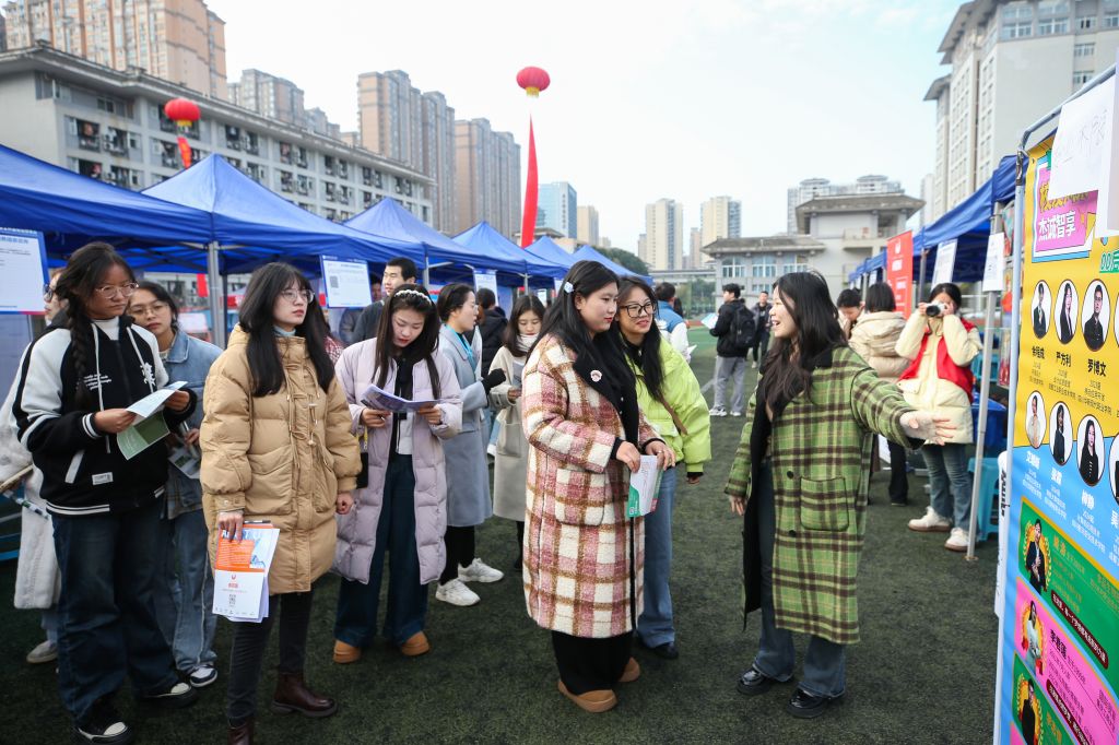 双选会共吸引了近200家用人单位进校发布岗位7500余个。与春季双选会相比,本次来自重庆、广东、浙江、安徽、江苏、上海等省外的用人单位明显增多,涉及制造业、卫生和社会工作、信息技术服务业等行业领域的岗位同比也有一定的增长。