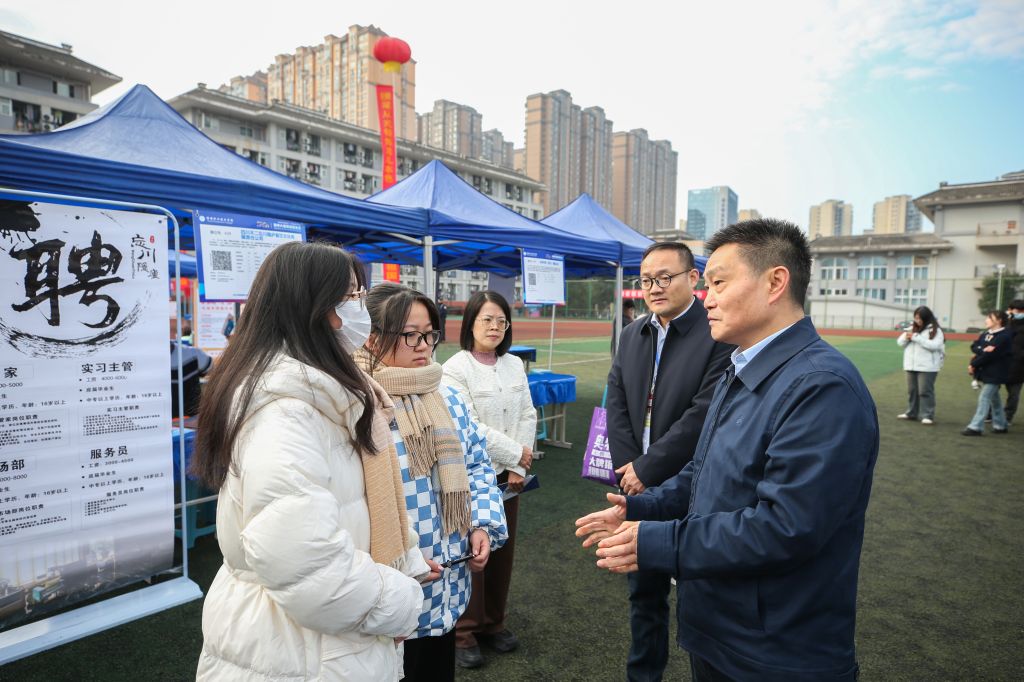 校领导在现场还与求职毕业生进行了亲切交谈,了解学生的求职心态,鼓励毕业生转变就业观念,全面了解形势、积极把握求职机会、尽早实现高质量就业。