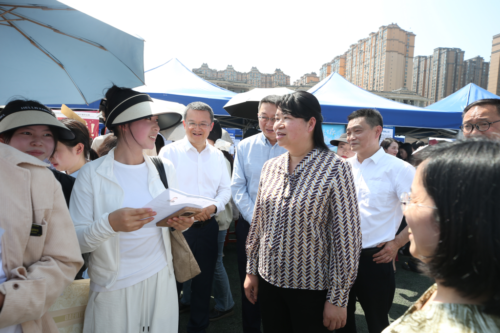 在学校青年路校区田径场2025年实习双选会现场,彭映梅与招聘企业、应聘学生亲切交流,详细询问招聘岗位、求职意向等情况,调研用人单位对雅职院就业工作和人才培养工作的意见建议,勉励应聘学生要树立正确的择业观和就业观,科学把握就业方向和职业目标,更好发挥个人价值、实现人生理想。