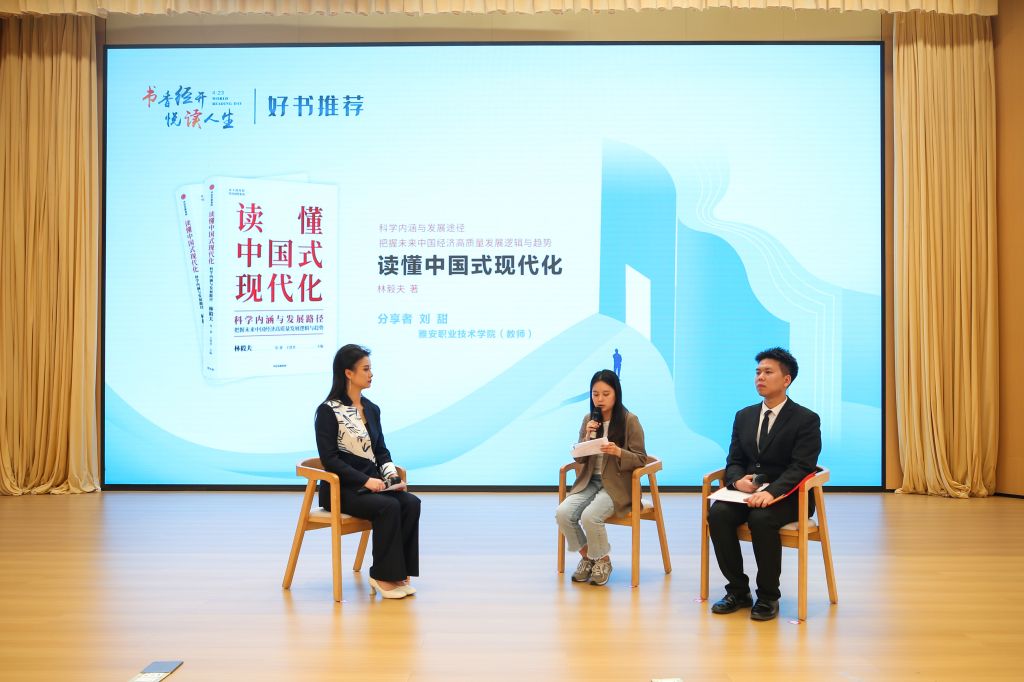 在读书分享环节,来自学校、雅安数字经济运营有限公司、雅安经开区政务服务中心、四川雅州新区发展集团有限责任公司等单位的6名代表依次登台,从不同层面、不同视角分享了他们喜爱的书籍,并畅谈读书感受。从书本到现实、从概念到感知,阅读者的分享让在场观众在匆忙的工作学业中放慢脚步,沉下心来,共同感受书籍的魅力,从阅读中汲取力量、感悟人生。