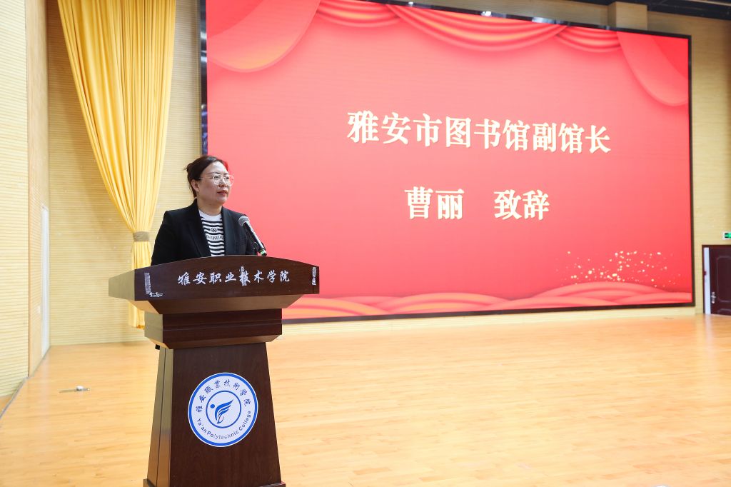 市图书馆副馆长曹丽在活动上发言。她表示,雅安市图书馆今后将继续与PP电子游戏网站在联合阅读推广与文献资源共建共享方面加强合作,希望通过校地协同共进、多维联动,共同推动书香雅安建设。