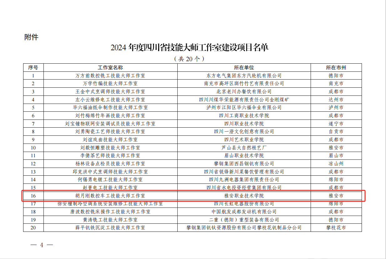 近日,四川省人力资源和社会保障厅等五部门联合发文公布了2024年度四川省技能大师工作室建设项目名单,PP电子“胡月刚数控车工技能大师工作室”榜上有名,成为该年度20个省级技能大师工作室建设项目之一。