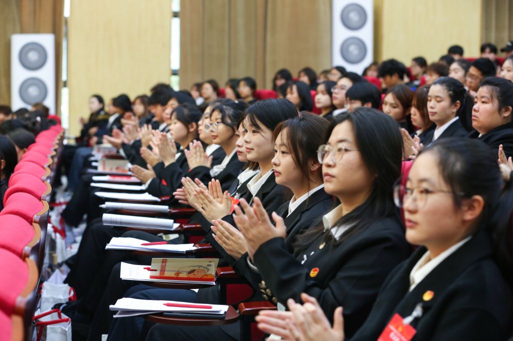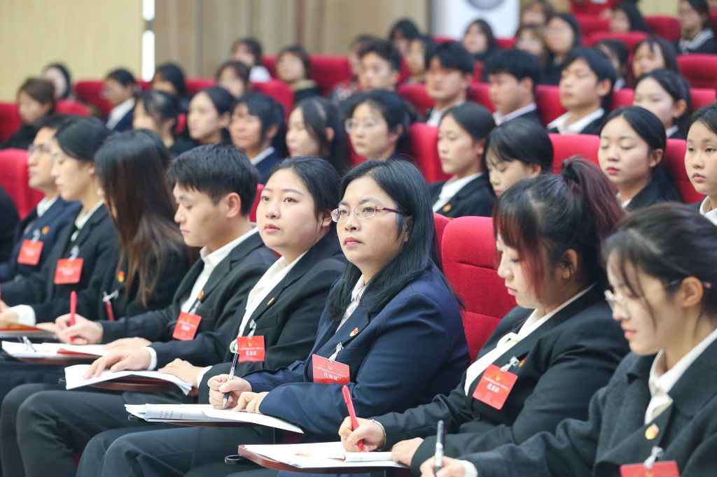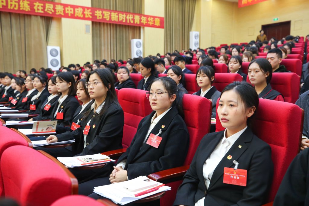 大会在与会者齐唱国歌声中拉开帷幕。赵野逸代表共青团雅安市委对大会的召开表示祝贺,并向雅职青年团员提出三点希望:一是主动走出校园,积极参与“三下乡”、社区服务等实践活动,用脚步丈量雅州大地,将所学知识转化为服务群众的实际行动,在生态保护宣传、乡村医教帮扶、文旅品牌推广等工作中展现青春作为;二是传承“感恩奋进”的雅安精神,敢于创新、勇于突破,在各自领域为家乡发展注入青春活力;三是牢记“厚德、重能、求是、创新”的校训,既脚踏实地又敢为人先,让青春在奉献中绽放绚丽光彩。