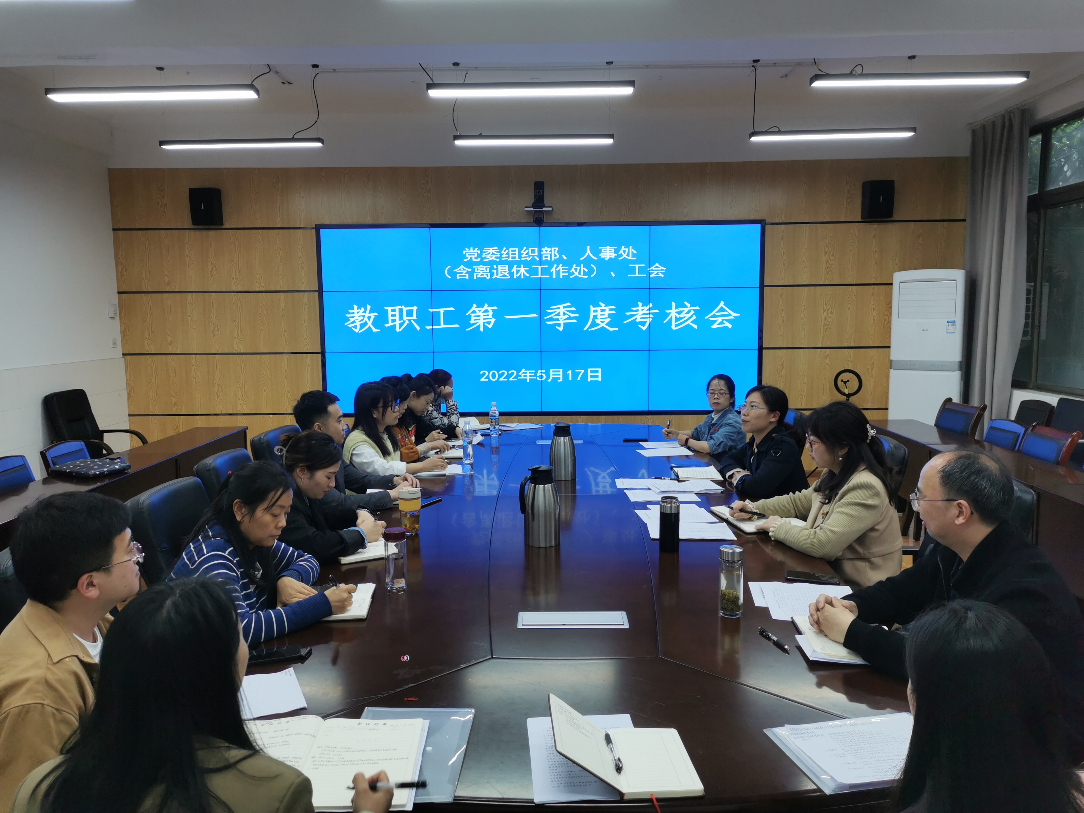 5月17日下午,党委组织部、人事处(含离退休工作处)、工会在青年路B207会议室召开“金牌讲师”专题讲座暨第一季度考核会。会议由组织部部长、人事处处长刘永恩主持。