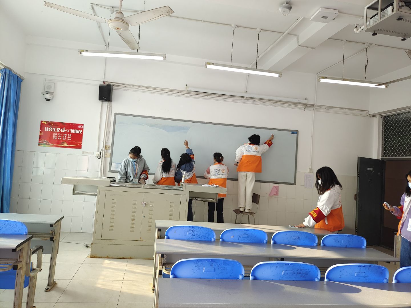 学院青志协联合智信学院围绕“法制护航·文明雅职”在校内开展普法宣传和文明劝导,宣讲疫情防控政策法规,倡导健康文明生活方式;师范学院、经管学院以“筑美校园·魅力雅职”为主题开展垃圾分类及森林防火安全知识宣传;临床医学院、护理学院、药检学院、康养学院围绕“阳光呵护·健康雅职”主题开展了校园义诊、推拿按摩等服务。同时,志愿者们还对三校区教室白板顽渍和校园卫生死角进行了集中清理。