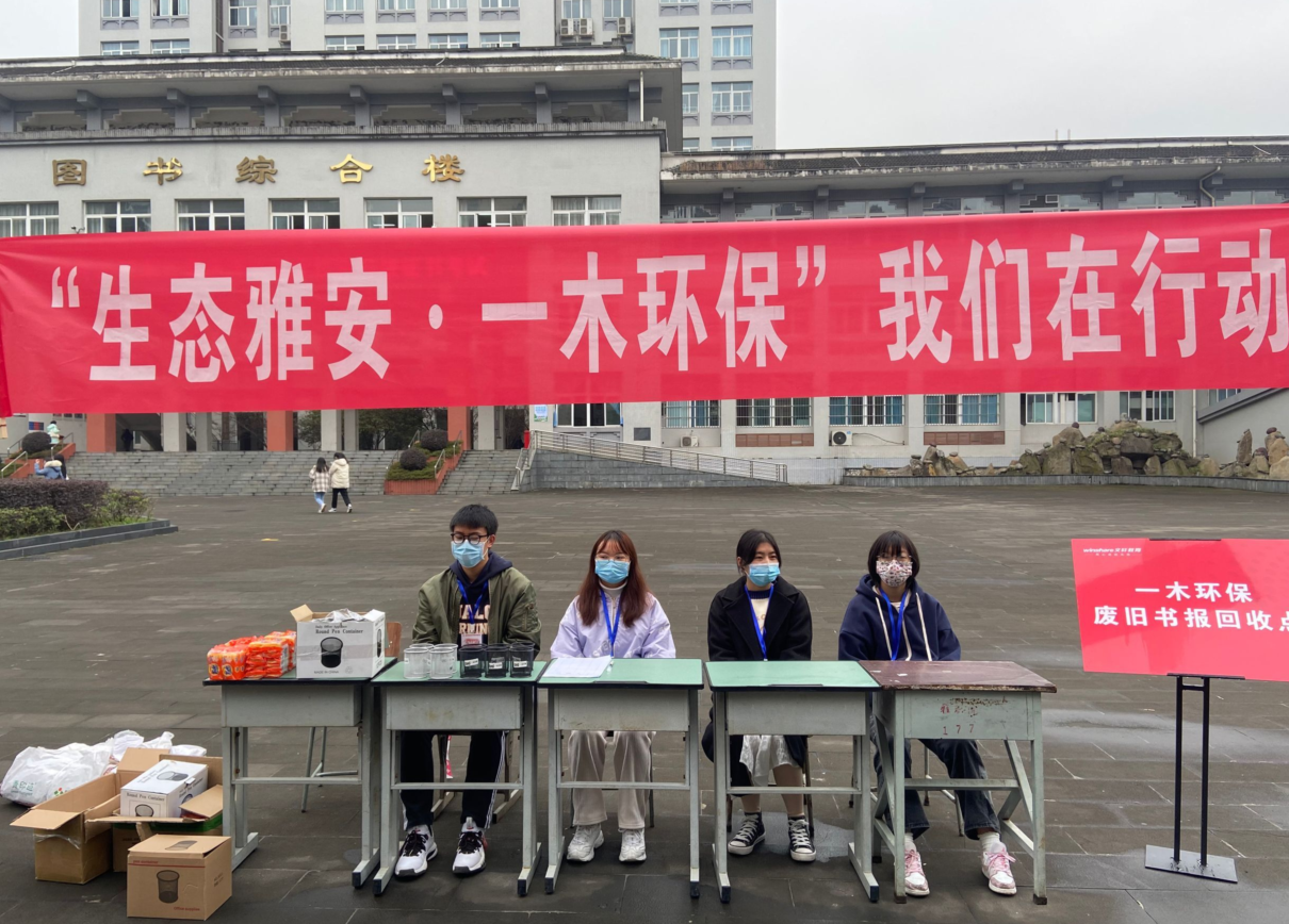 书籍是人类进步的阶梯。12月8日,护理学院在青年路校区图书综合楼前成功开展了以“生态雅安•一木环保”为主题的图书捐赠活动。