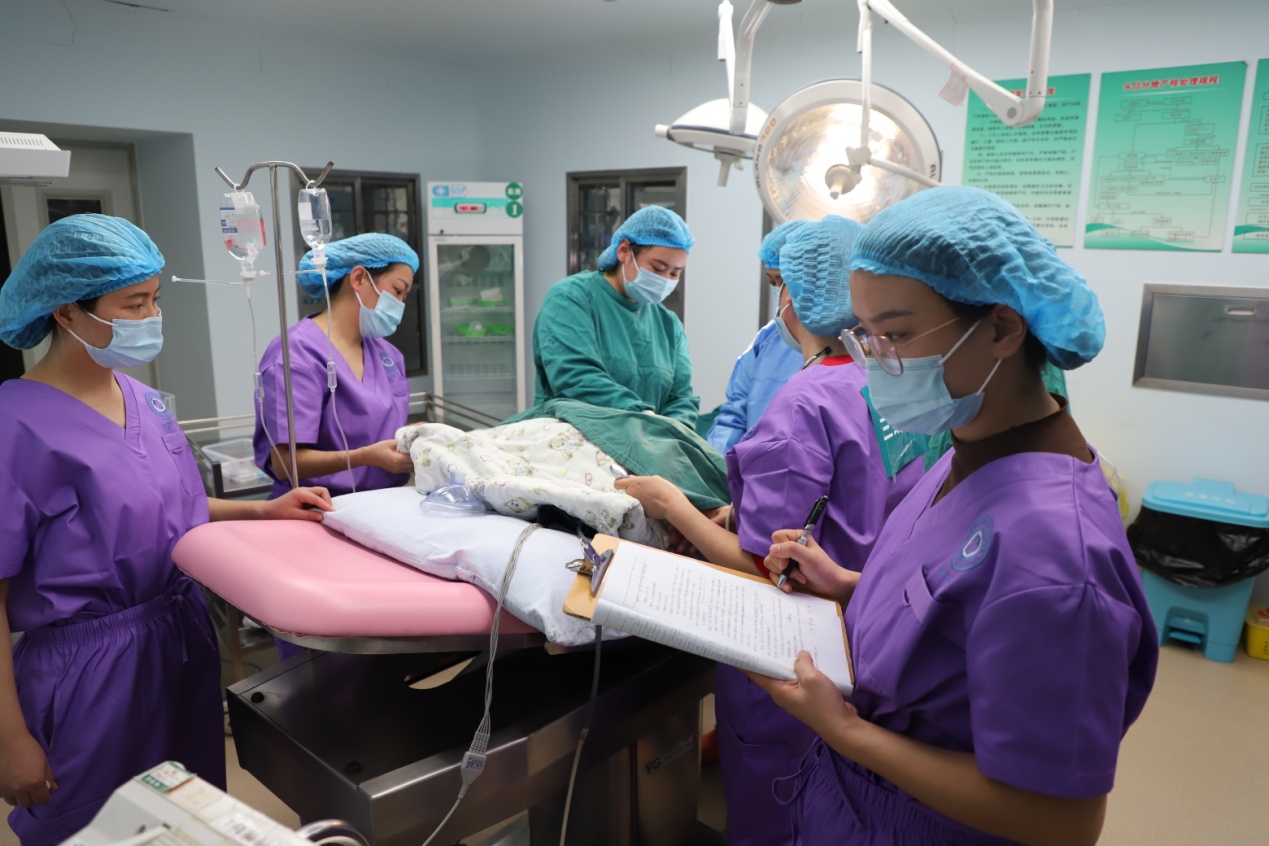 此次演练模拟一名产妇在顺产后因子宫乏力发生大出血,医护人员根据病例情况,迅速判断病情、分析出血原因、提出抢救方案,并按照产后大出血“三级预警机制”及流程有条不紊地采取一系列科学有效的抢救措施进行施救。