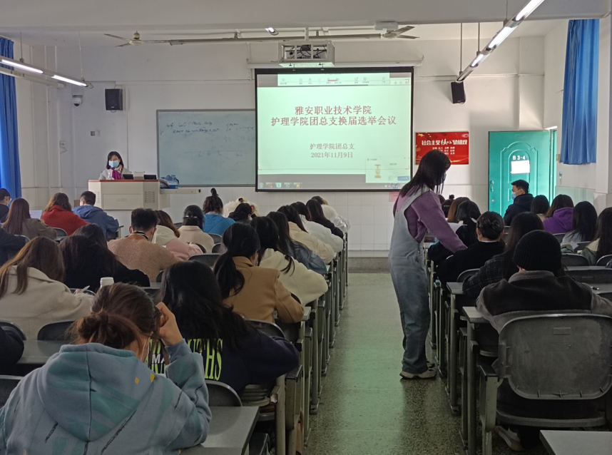 11月9日,护理学院团总支换届选举大会在青年路校区B303、B304、B305顺利开展。护理学院团总支书记万黎主持,副书记朱学坤、付相茹,161名同学参加。会议由万黎主持。