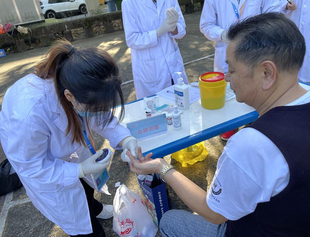 志愿者分为三组,宣传组在社区周边、路口、街道向居民普及高血压的预防知识与防治知识,推广义诊服务,开展卫生健康科普知识宣传;医疗组对社区居民进行测血糖,测血压,康复推拿、视力检查等基础项目,并针对受众人群提出合理建议,加强疾病预防;创卫组对社区周边卫生环境进行清洁和维护。