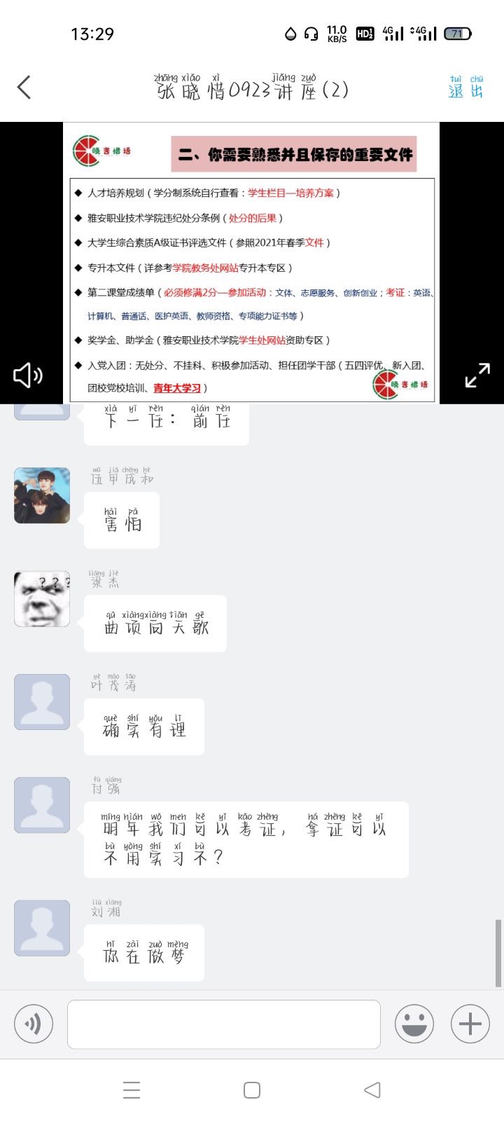 张晓惜在简单介绍PP电子、人才培养、奖助贷政策后,又从党团培养发展、做好职业生涯规划、注重情商培养、提高人际沟通技巧、综合素质全面发展五个方面重点讲解如何让大学生活精彩丰富,不留遗憾。她提醒新生青春逢盛世,奋斗正当时;要牢记初心,坚定理想信念,着力锤炼高尚品格,不断增长能力才干,保持奋斗精神,不负韶华,不负青春。讲座结束,同学们纷纷表示干货满满,入学的疑惑一一得到解答。