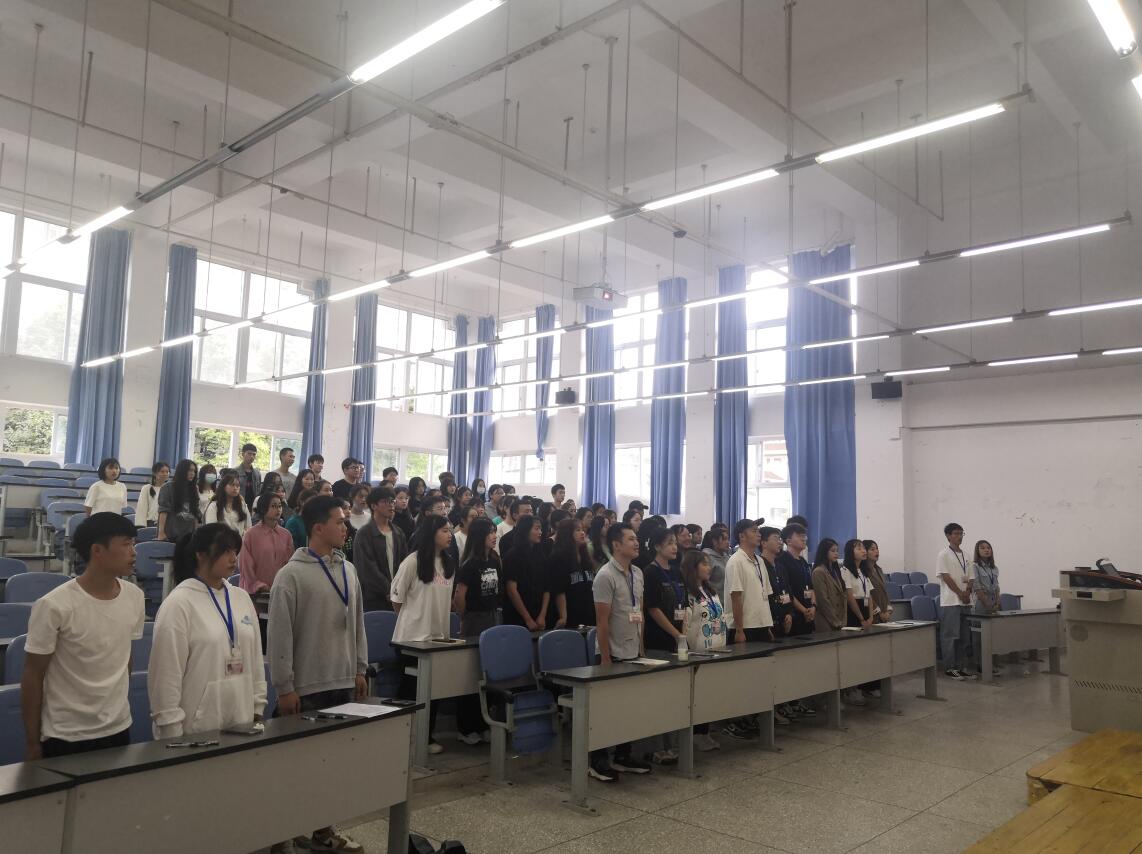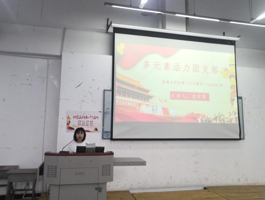 团课上,全体团员起立奏唱团歌,学习 了“请党放心,强国有我”倡议书,观看 了“请党放心,强国有我”共青团员和少先队员代表集体致献词的视频。2020级团支书代表龙宇思介绍了多元素活力团支部,倡导同学们贡献自己的力量,不负党和人民的殷切希望,努力成为能够担当民族复兴大任的时代新人。最后大家在《我和我的祖国》歌声中结束了本学期第一次团课。