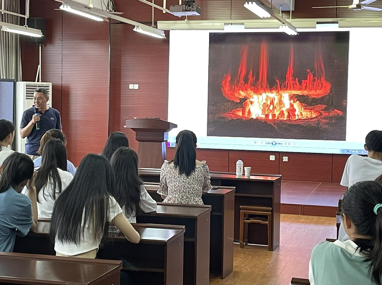 李雪松以《收租院》雕塑作品为案例,并结合学院特色美育课程《黑砂创意实践课程》的教学内容,向同学们详细讲解了艺术家在主题内容、人物塑造、创作手法、艺术语言等方面的演变,以及蕴含的党史故事,将党领导人民开展新民主主义革命到社会主义建设的探索和发展成就,用艺术的视角予以展现。