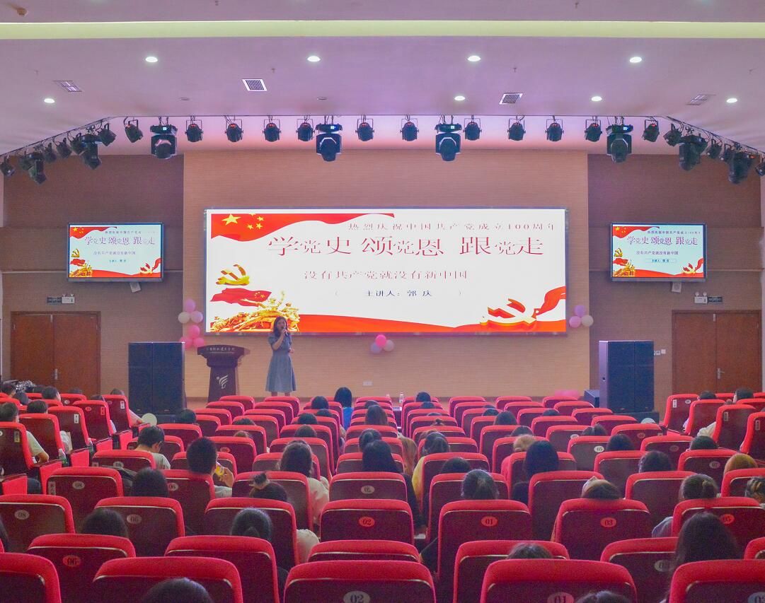 郭庆以一百年来活跃在历史舞台的先进青年人为例,讲述了在不同时期的青年人奋勇拼搏、敢于做时代的弄潮儿的风采,号召雅职学子要紧跟时代潮流,以坚忍不拔的志气,奋发有为的精神状态,不忘初心,坚定对党和国家的信心,紧跟着党走,砥砺前行,在全面建设社会主义现代化国家新征程中贡献出自己的青春力量。