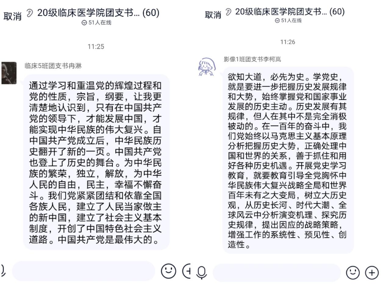 又是一年五四,属于青年的节日,在院团委的部署下,临床医学院团总支组织47个在校团支部在线学习观看“学党史 强信念 跟党走”主题云团课,并展开专题讨论,共度五四青年节。