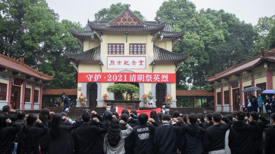 早上九点,祭奠活动正式开始。学生代表为烈士敬献花篮,全体师生默哀一分钟,缅怀革命先烈。学生会执行主席李紫晶带领全体团员重温入团誓词,铿锵誓词,传递了雅职学子不忘初心永远跟党走的决心。
