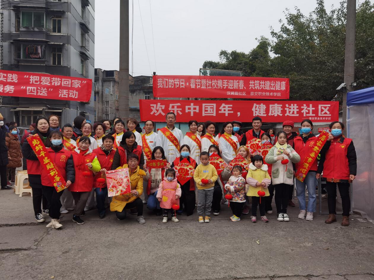 2月2日,学院师生志愿者20余人来到雨城区汉碑路社区和“联包帮”大院开展“欢乐中国年,健康进社区”春节志愿服务关爱行动。本次活动由院团委牵头,护理学院、康养学院共同参与,院团委副书记叶芋伶、郭庆,汉碑路社区副书记孟为民、吴文祺参加活动。