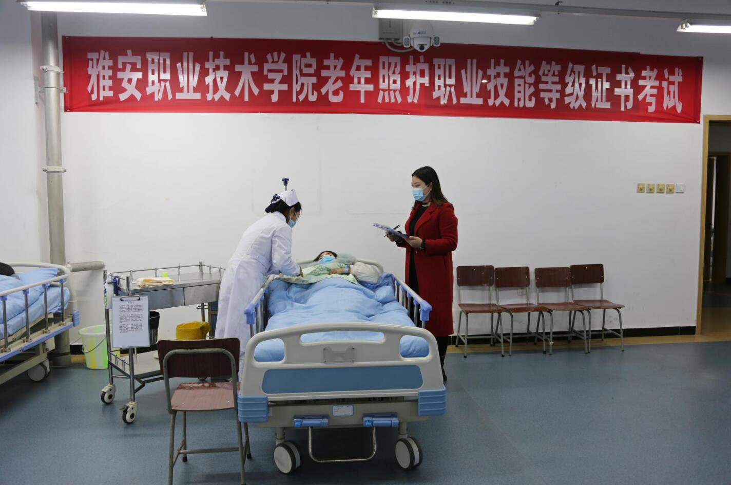 考试包括理论考试和实操考试两部分,其中,实操部分涵盖了老年人饮食照护、清洁护理、紧急救治等内容。此次考试严格按照教育部相关规定与要求,精心组织、周密部署,确保考试圆满顺利。四川省考评站组织考评员和考务人员进行了考评。