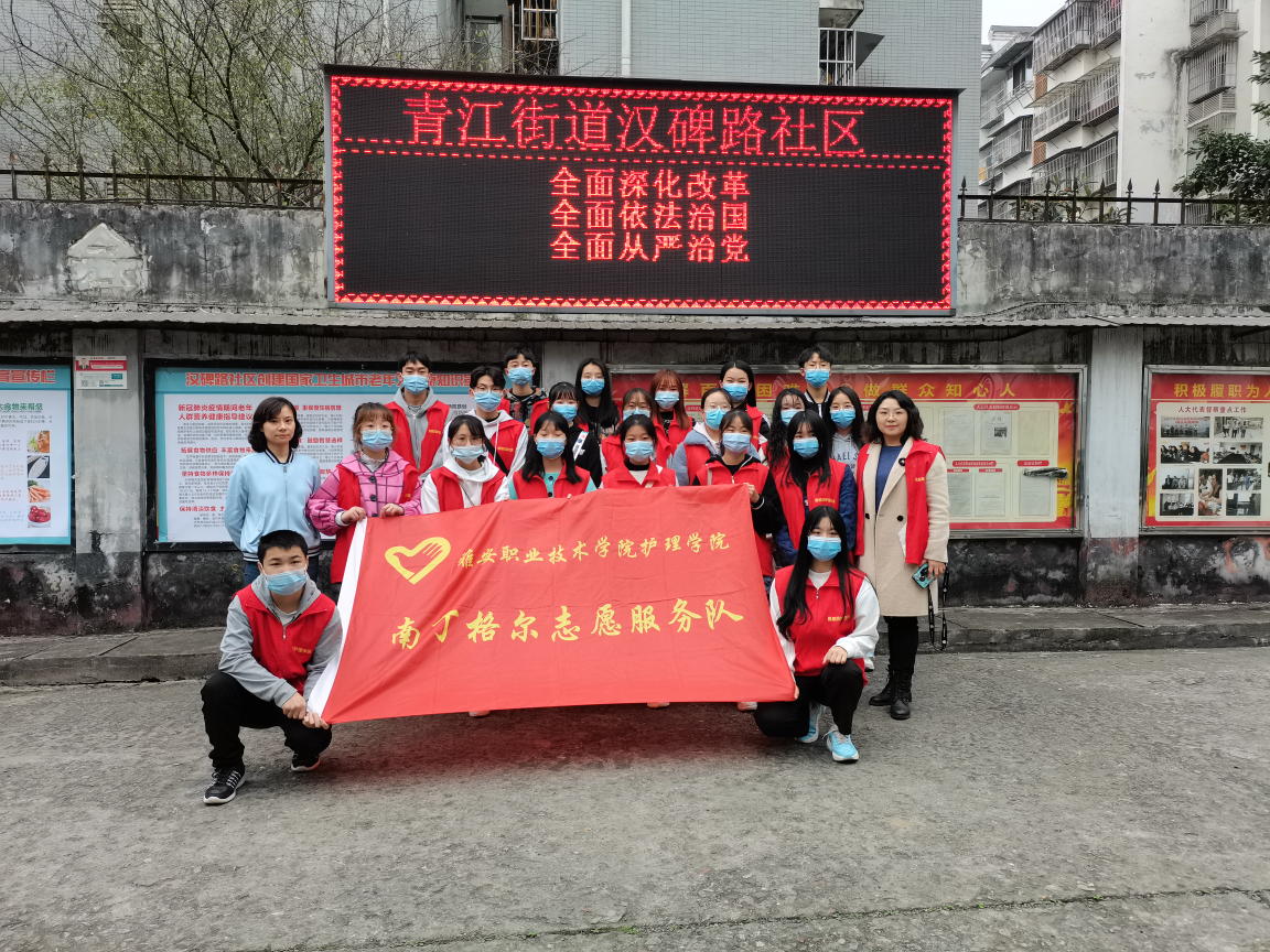 11月20日,护理学院“南丁格尔”党员志愿服务队来到学院党建联建社区——汉碑路社区爱国苑小区开展志愿服务。本次活动由护理学院党总支书记姚婕带队,30余名师生志愿者参与活动。