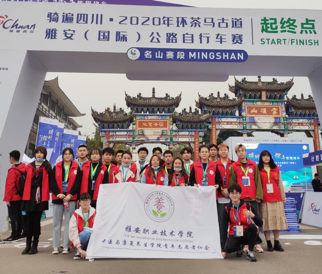11月11日,2020年环茶马古道雅安(国际)公路自行车赛首站在雅安市名山区举行。中医与康复养生学院青志协组织20名志愿者,协助名山区团委做好此次活动的志愿服务。