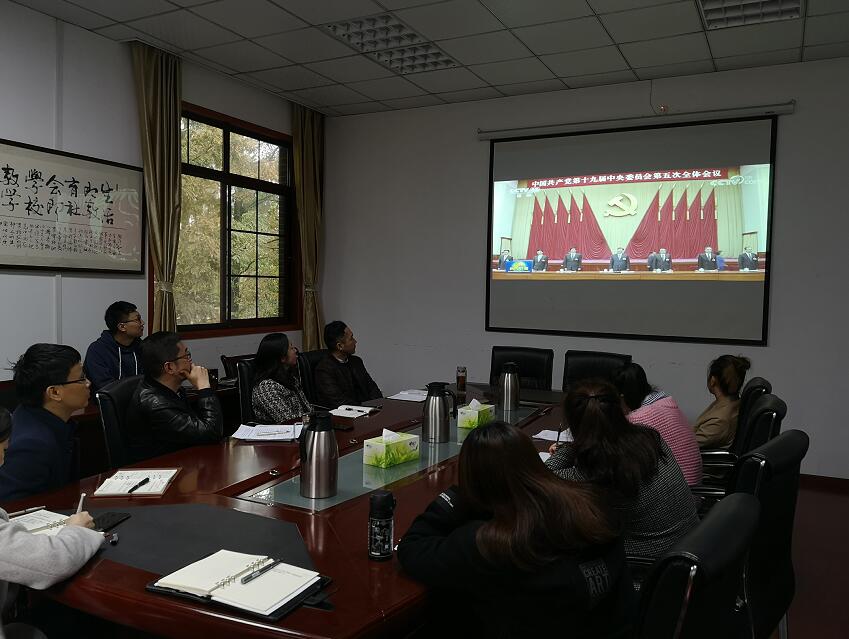 党的十九届五中全会是我们党站在“两个一百年”历史交汇点上,对开启全面建设社会主义现代化国家新征程作出战略决策的一次重要会议。陈文志指出,在学习党的十九届五中全会精神过程中,既要去深入领会国家急迫需要和长远需求,打牢共同的思想政治基础,同时也要将贯彻精神与学院重点工作相结合,并落实在到具体的事务中去。目前也正值学院“十三五”规划全面收官总结以及“十四五”规划启动编制之际,我们要提高政治站位,精心开展学院“十四五”规划的编制工作,全体教职工要坚持立德树人,不忘初心,要有谋划未来的远见卓识和继往开来的历史担当,积极为学院的发展提出建设性意见。要持续更新知识储备,提高理论水平,结合办公室工作特点,在文稿起草中深入学习公报内容,不断提高办公室写作水平,为学院高质量发展作出积极贡献。