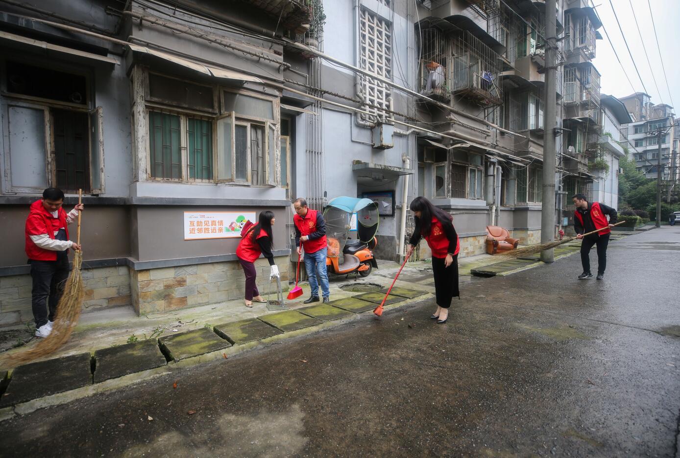 在与社区负责人对接“联包帮”具体工作后,志愿者们分为四组对小区公共区域、绿化带及卫生死角进行全面清扫,数十名小区居民自带清扫工具,主动加入志愿者队伍,共同对小区环境进行清扫。
