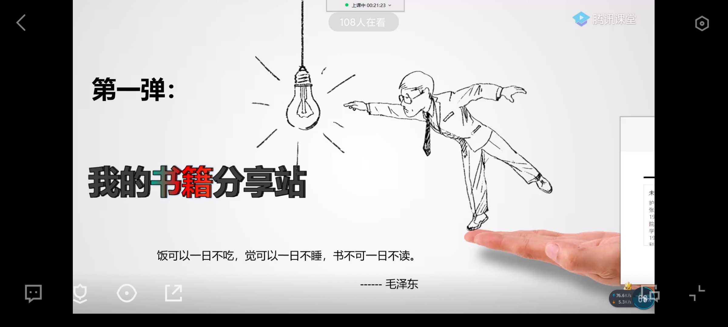 活动过程中,学生分享了《消失的微生物》《羊皮卷》《我的野生动物朋友》《撒哈拉沙漠》四本书籍,同学声情并茂地向与会同学推介书籍,介绍相关书籍背后故事。同时,介绍了“熬夜知识”、“护肤”以及“病毒流感预防”的知识等科普知识。同学们积极参与互动,活动氛围热烈。