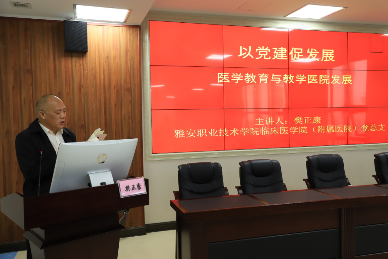 9月28日下午,PP电子游戏网站副院长、临床医学院(附属医院)党总支书记樊正康以“党建促业务发展 - 医学教育与教学医院发展”为题,临床医学院(附属医院)班子成员、中层干部及全体党员聆听专题党课。