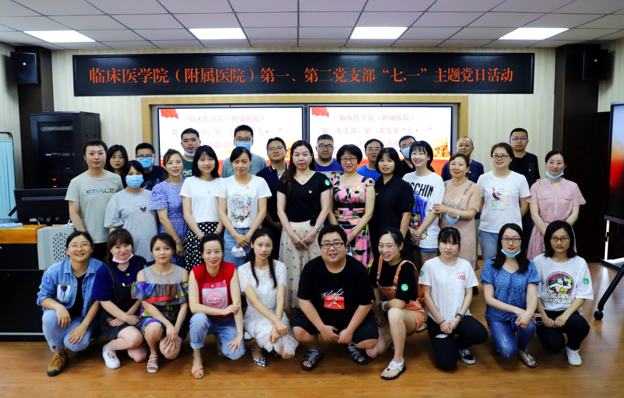 在中国共产党成立99周年之际,为进一步丰富党内政治生活,推进“不忘初心、牢记使命”主题教育常态化制度化,7月1日下午,临床医学院(附属医院)第一党支部、第二党支部在实训楼202教室联合开展“七一”主题党日活动,党员及预备党员共计30余人参加。活动由临床医学院(附属医院)第一党支部书记马霖主持。