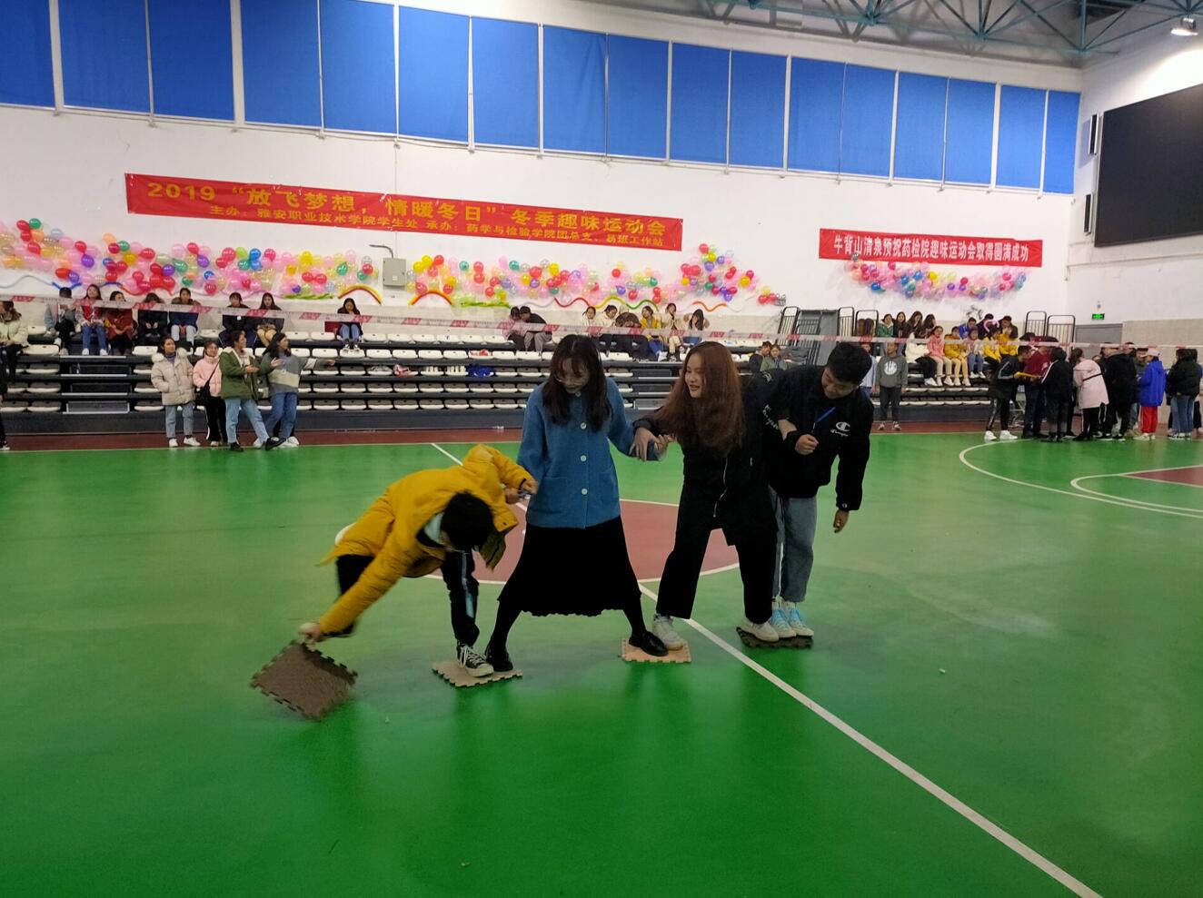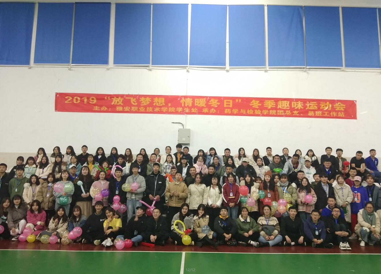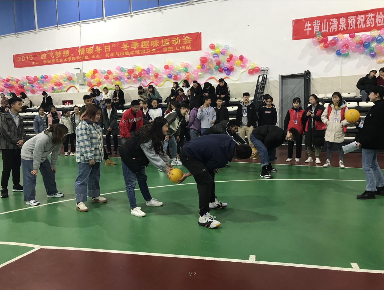 暖暖冬日情,澎湃运动心。为丰富学生课余生活,鼓励学生健康运动,增强班级凝聚力,12月14日14:00,药检学院在经开区校区室内篮球场成功承办了由学生处主办的“放飞梦想,情暖冬日”冬季趣味运动会。本次趣味运动会共有12个项目,以班级为单位自行组队参赛,来自药检学院、护理学院、经管学院的共计354人参与。