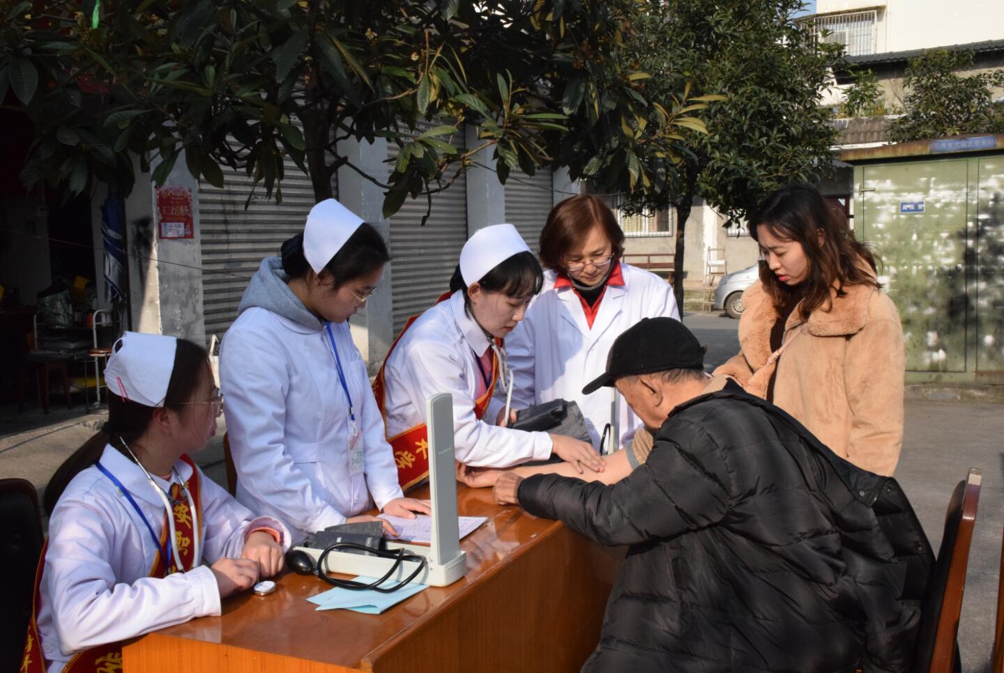 12月10日,护理学院教师周晓琴、戴晨茜带领12名志愿者在先锋小区开展了以“携手社区,共筑健康家园”为主题的爱心义诊活动。