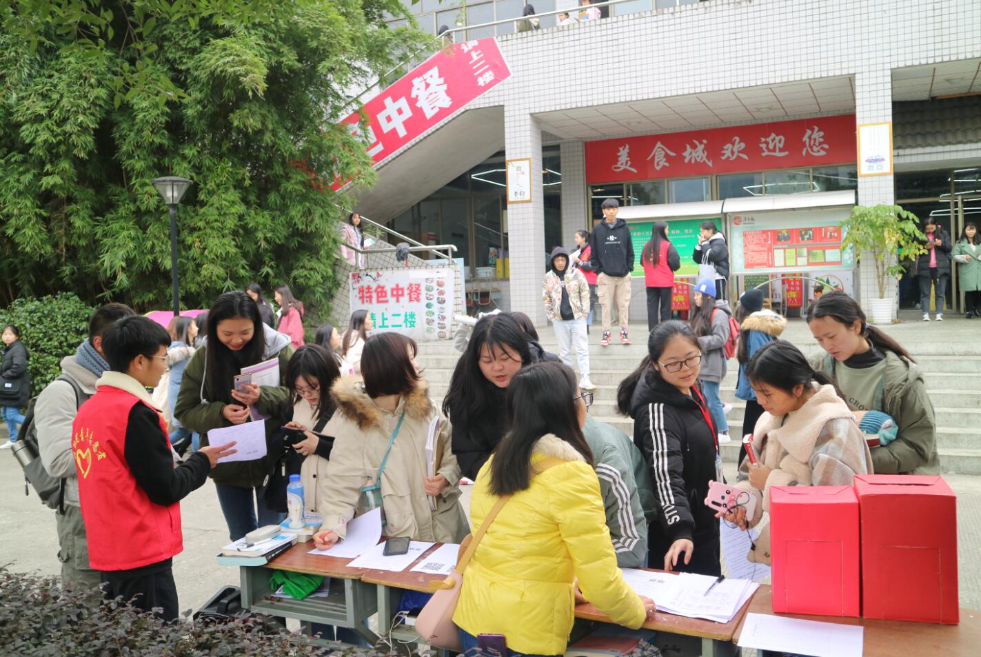 青少年是国家的未来,民族的希望,他们的安全关乎每个家庭的幸福。在学院团委的支持下,献爱心捐赠活动分别在育才路校区、青年路校区、经开区校区开展。通过志愿者的积极宣传,老师、同学们纷纷慷慨解囊,奉献自己的一份爱心。短短5天的时间,活动共募捐到现金735.56元,网上捐款5914.4元,共计6650元。捐款将发往雅安市红十字会,用于购买安全书包和安全系列教育丛书,向全市贫困地区中小学生免费发放。