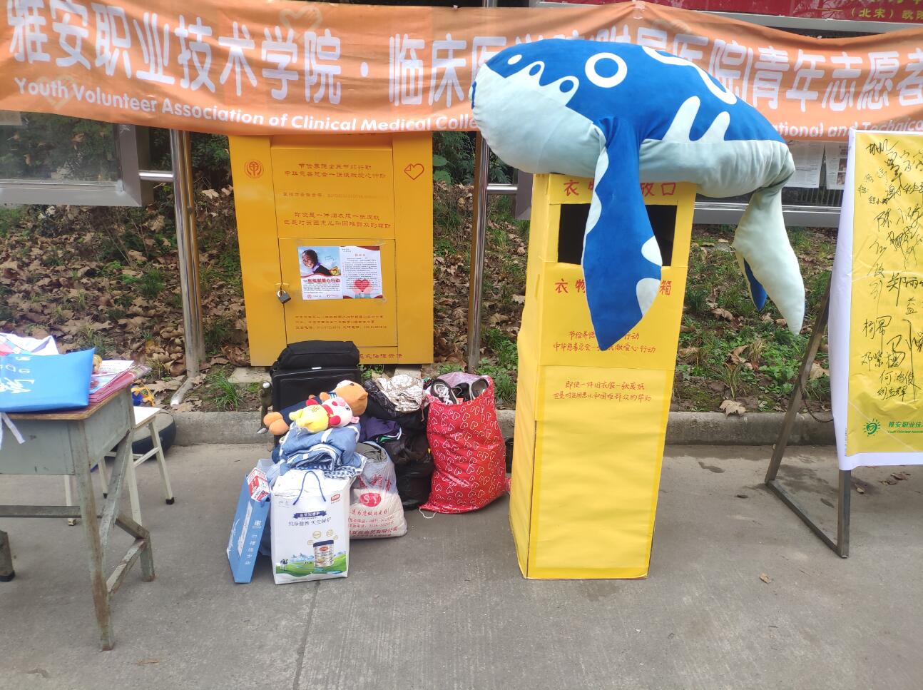 活动中,一部分志愿者向来往同学宣传“一张纸献爱心行动”公益活动,讲解所捐衣物的去向,组织捐赠同学自愿在倡议签名墙上留言祝福。另一部分志愿者对所捐衣物、书本进行登记造册,赠送捐赠者本子、签字笔等小礼物。学院党委副书记、工会主席付洪涛更是莅临现场了解活动概况,对活动的开展表示肯定。