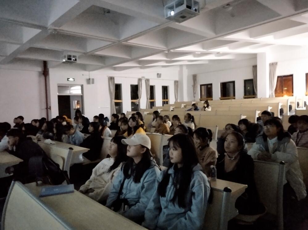 本周播放的是1935年发生在日本的真实故事《忠犬八公的故事》,影片主要讲述一位大学教授收养了一只小秋田犬八公,后来因教授去世,再也没有回到车站,八公在之后的9年时间里依然每天按时在车站等待,直到最后死去充满爱与泪的故事。同学们有序进场,也没有带入任何零食。电影开始后,每个同学都认真观看,偶尔小声交流看法。结束后,同学们讨论着电影细节,意犹未尽的离开了教室。