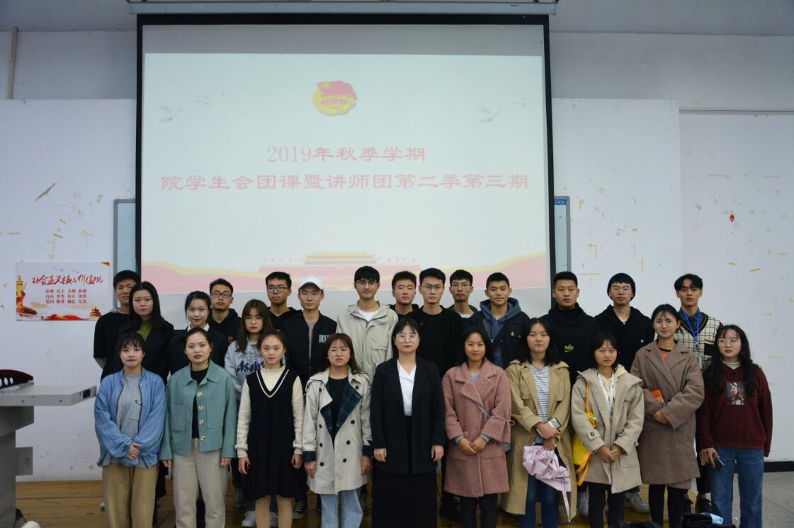 10月26日,由院团委主办的院学生会团课暨讲师团第二季第三期在青年路校区图阶102举行。院团委学生副书记(兼职)张艳琳、院学生会全体干部、干事等300多人参与学习。