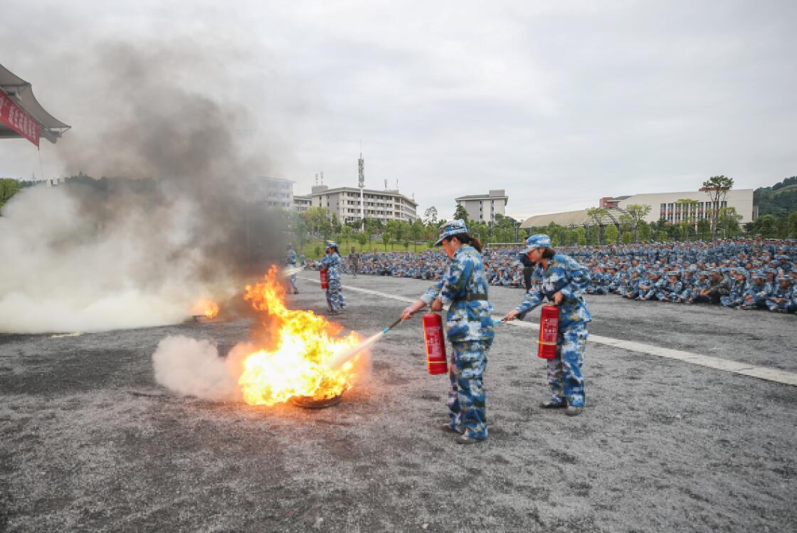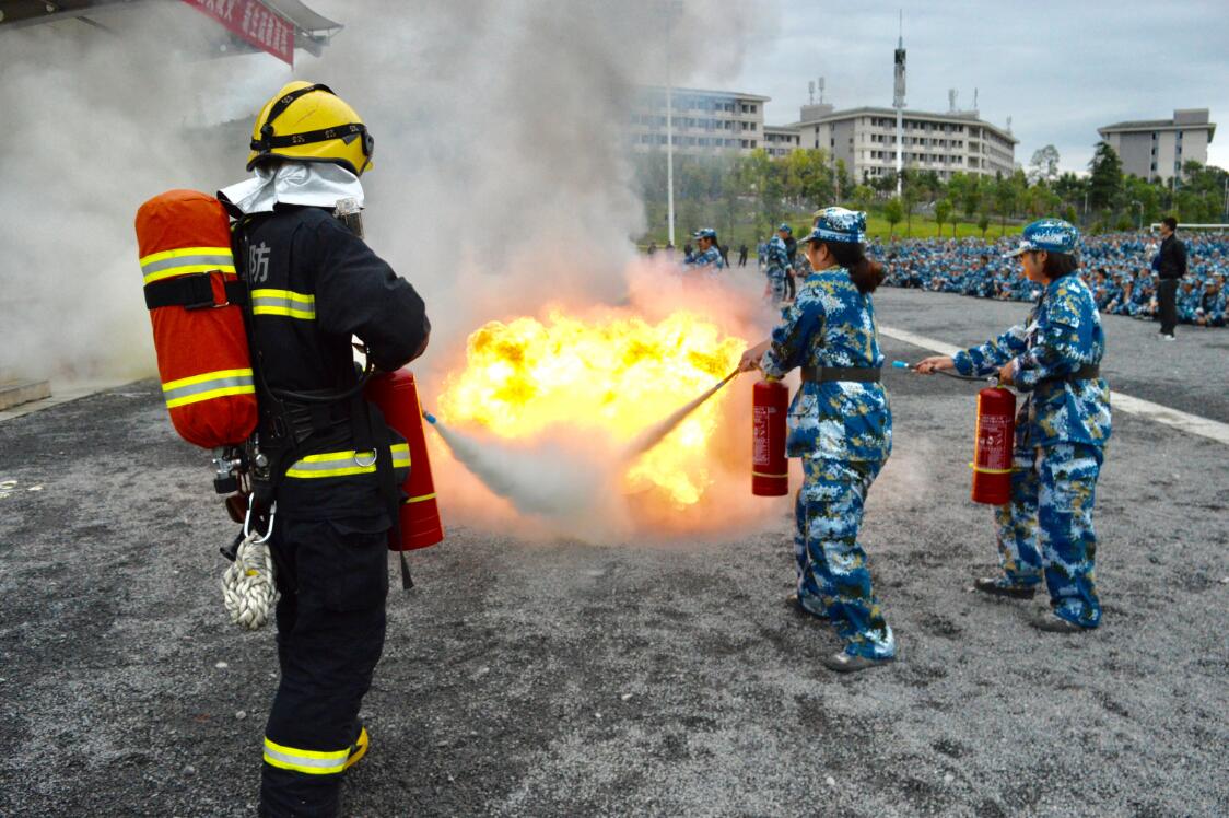 疏散演练结束后,由学院附属医院的医生为新生讲解了急救常识心肺复苏的步骤,并进行了现场演示。随后雅安市消防支队的消防官兵现场为新生进行了消防知识培训,主要讲解了电气火灾的知识防范,发生火灾时如何报警、如何扑灭初级火灾、自救逃生的方法、熟悉疏散路线、ABC干粉灭火器、消火栓的使用方法及学习穿戴专业消防战斗服、并向学生展示了消防特勤器材。