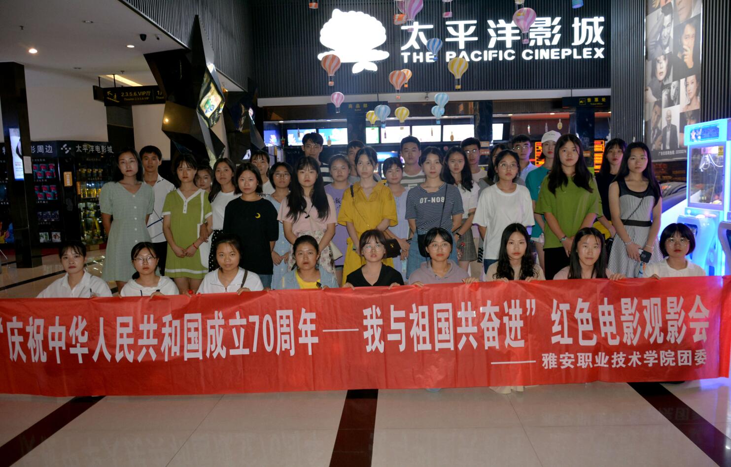 为庆祝中华人民共和国成立70周年,重温革命历史,感悟党的初心使命,学院于9月10日下午在太平洋影院组织了47名团员青年和团委老师一起观看了献礼新中国成立70周年革命历史题材电影《红星照耀中国》。