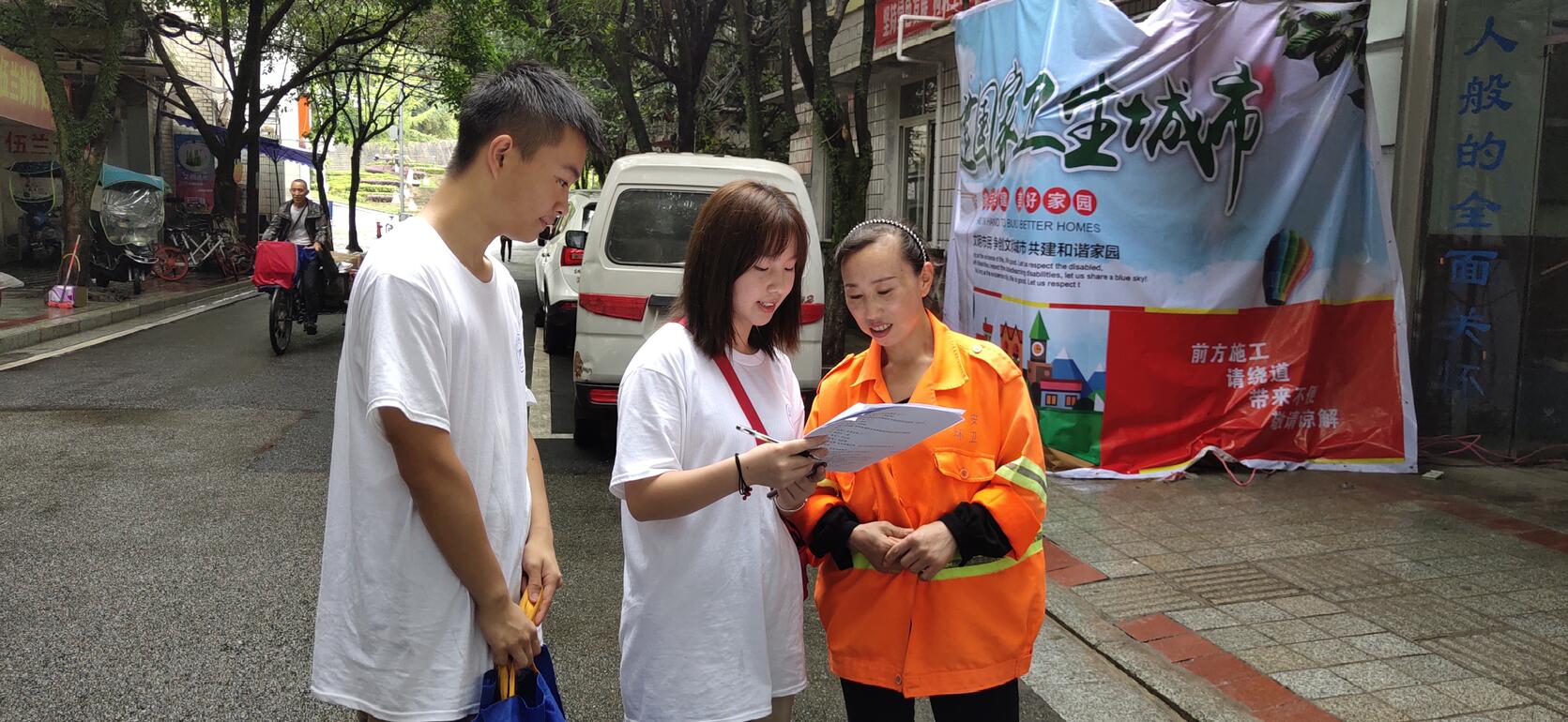 12日,实践团队和雅安市生态环境局的老师们一起到桃花巷华兴街社区开展了卫生清扫和环保调查活动。活动的开展,不仅让居民们掌握了更多的环保知识,也让志愿者们前两天学习的环保知识有了实践的舞台,更增强了他们做好一名环保志愿者的信心和决心。