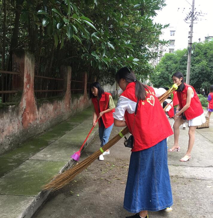 志愿者们带上了清扫工具,将社区花台内、单元楼楼梯口、社区街道等地方的大小垃圾清扫干净,随后志愿者们跟随老师进行入户调查居民们对雅安“双创”的了解程度以及他们的建议和意见。在走访的20多户住户里有5户不了解双创活动,经过老师和志愿者们的宣传也有了一定的了解。