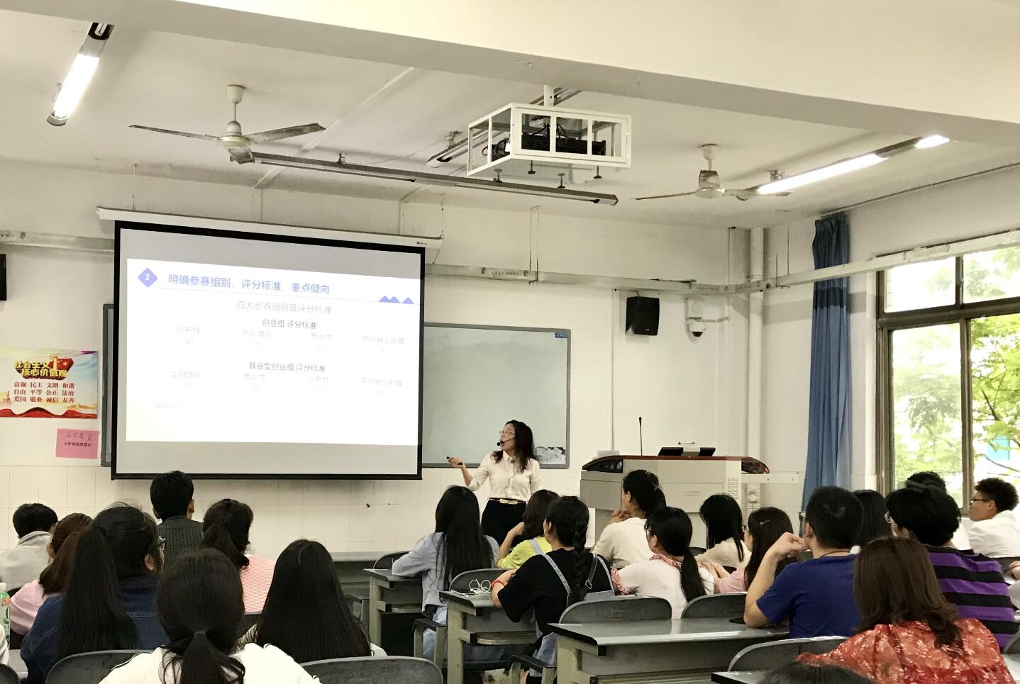 为提升大学生创新创业实际操作能力,解决同学们在准备“创新创业”比赛过程中普遍存在的问题,基础医学院于6月11日下午在青年路校区B305教室举办了以“项目路演和VCR制作注意事项”为主题的讲座,暨基础医学院“创业实务”公开课。本次活动由李明蓉老师主讲,基础医学院全体教师和参加本次学院创新创业大赛初选的50余位学生代表聆听了本次讲座。