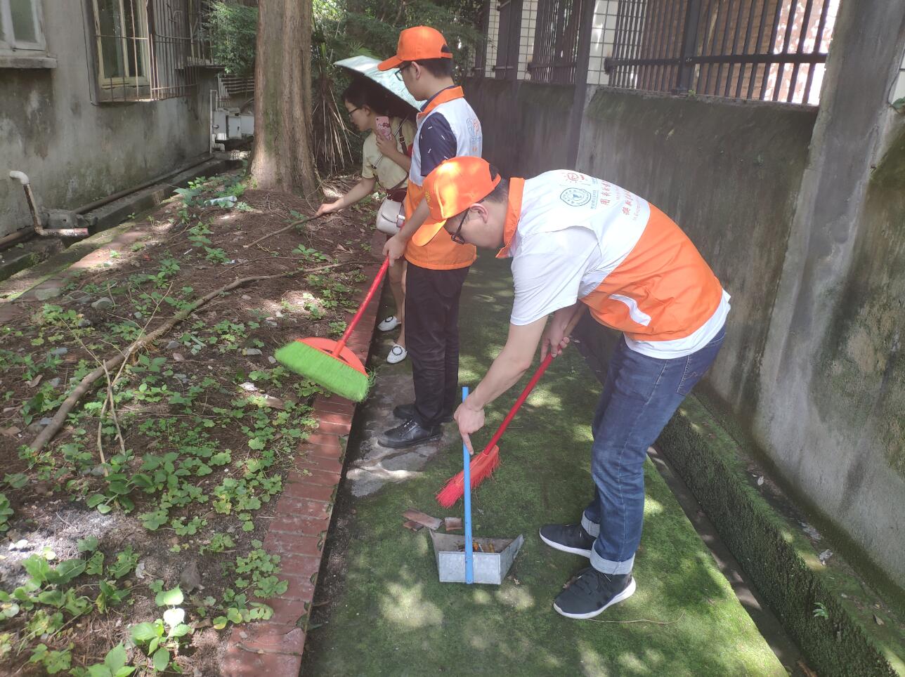 活动中,志愿者以小组为单位,分区域进行清扫。志愿者和老师手持扫帚、垃圾袋等,沿着社区街道一路清扫,确保负责区域无卫生死角。炎炎夏日并未阻挡志愿者争当环保卫士的热情,两位老师更是以身作则,发挥了良好的带头作用。