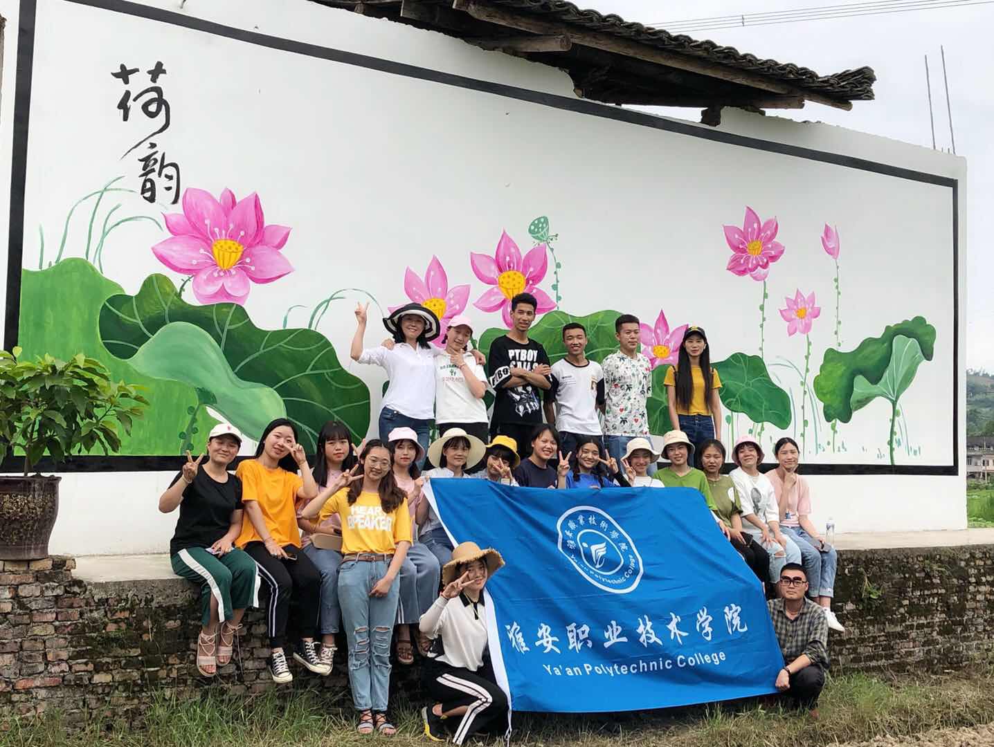 为本次活动的成功举行,前期在学院党委副书记付洪涛的带领下,学院扶贫工作小组多次到天全县小落村进行“文化扶贫”实地考察,和村干部、村民深行交谈,了解村民需求,并测量数据、调制颜料、描绘草图。