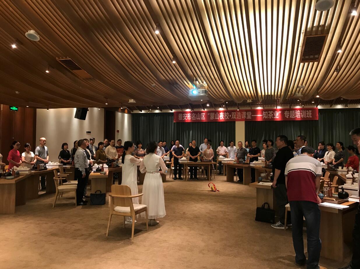 5月21日晚,由雅安市名山区委组织部主办,经济与管理学院承办的“蒙山夜校•双选课堂—知茶业”专题培训班第五讲在名山花间堂开展。区委、区人大、区政府、区政协部分领导成员,各乡(镇)、部门主要负责人或分管领导共计50余人参加了培训。