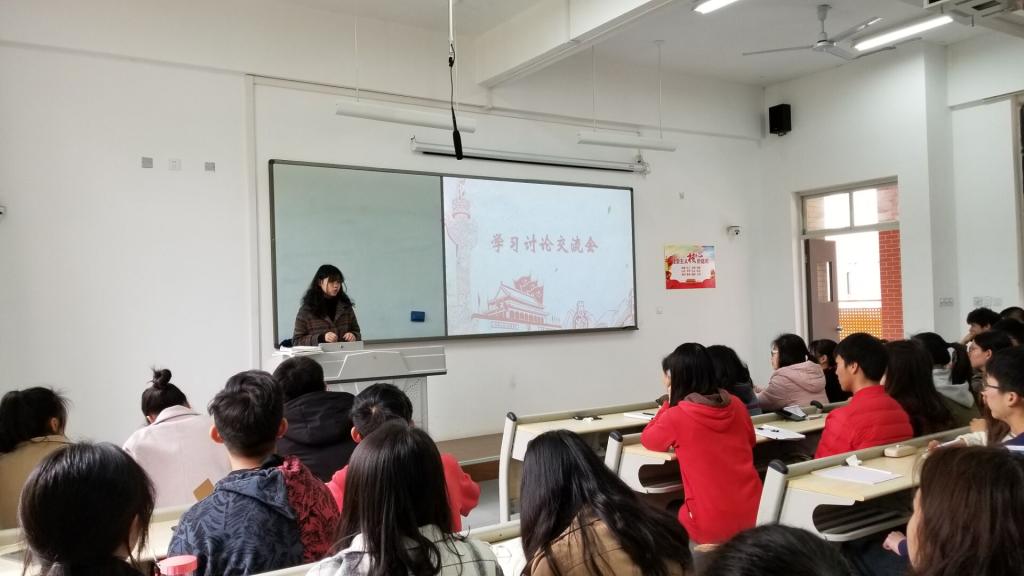 团课中,赵武博老师以“五四”一百周年为背景,用提问的方式让大家对共青团员的定义、性质、义务、权利等几个方面有了更深刻的理解。随后带领大家奏唱团歌、集体阅读《团团致四川学子的一封信》、观看团课视频、集体学习青年大学习主题团课、重温入团誓词等方式来引导同学们牢记使命,坚定理想信念。接着学生会干部以自身经历向大家阐述如何在学习生活中做好团务工作,解决问题。