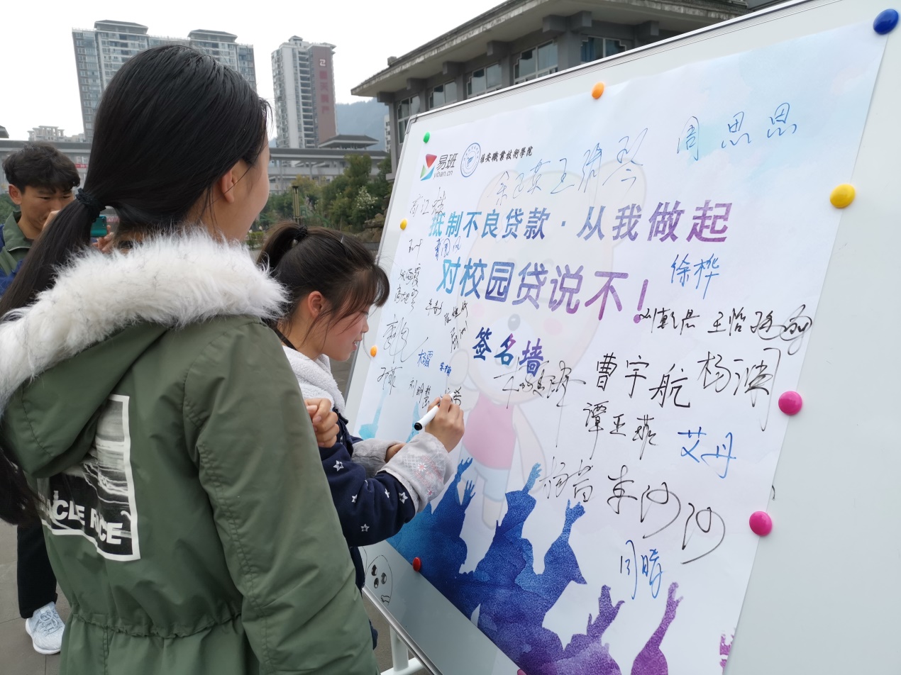 3月12日和19日下午,易班发展中心分别在青年路校区和经开区实训与服务中心开展了“抵制不良贷款,从我做起——对校园贷说不”宣传活动。
