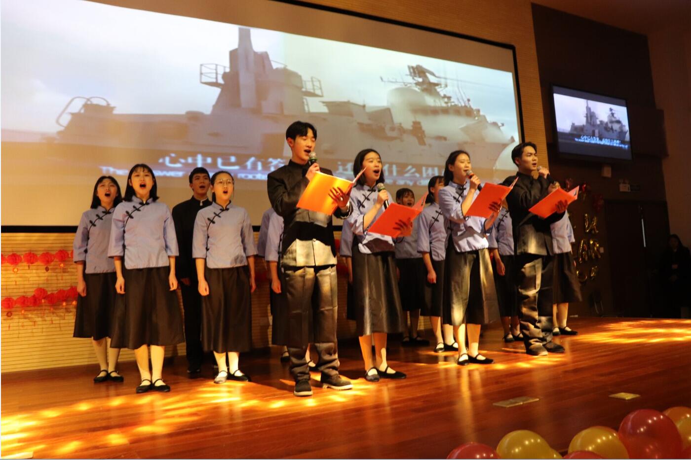 晚会分为序章、改革创新、传承梦想、绽放青春、终章五个篇章,共14个节目。表演形式多样,有小品、历史剧、音乐剧、歌舞、朗诵等。同学们优美的舞蹈、嘹亮的歌声、精彩的表演赢得了在场老师和同学们的阵阵掌声。经过评选,节目《国家》荣获一等奖;《时间都去哪儿了》、《水墨丹青》荣获二等奖;《初心》等荣获三等奖;《我的国》等荣获优秀奖。