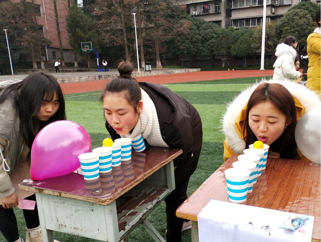 本次游园会内容丰富多彩,有彰显主题的理论问答“青年大学习”、儿时益智休闲游戏“夹弹珠”“炸弹传递”、考验手脚协调能力的的“斗鸡大会”、团队合作游戏“你比我猜”、“抱抱团”、奖品兑现环节“快乐套圈圈”等。活动现场人声鼎沸,老师和同学们沉浸在欢乐喧腾的游戏中,尽情享受着游戏带来的快乐。