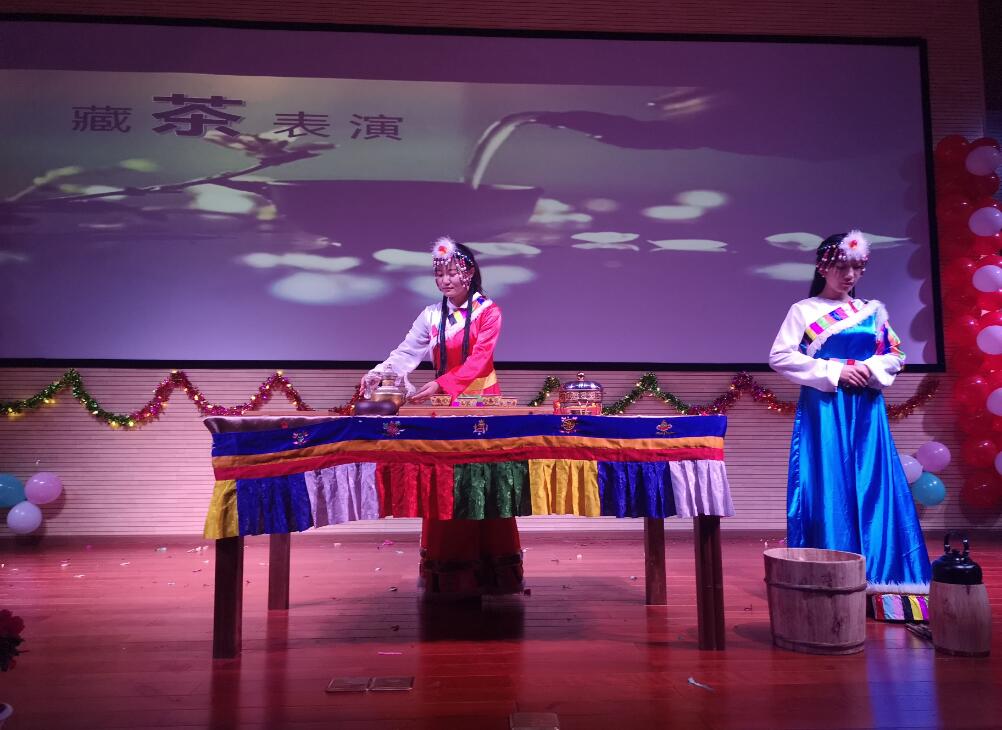 整场晚会表现形式多样:舞蹈、吉他弹奏、说唱、相声、哑剧等。晚会不仅是视觉上的盛宴,其中很多节目还展示了经济与管理学院不同的专业特色。炫酷多姿的茶技,展现刚健向上的艺术风格;静穆优雅的茶艺《藏茶》,向同学们展示了藏茶冲泡和文化特色;导游词的讲解,让所有新生同学全面深入的了解雅安的地理环境和风土人情;会计技能展示,单指单张、多指多张的点钞手法和算盘的应用,引来全场一阵阵惊叹;礼仪操展示,表演者的站姿、坐姿、握手礼等充分展现了大学生饱满的精神风貌。