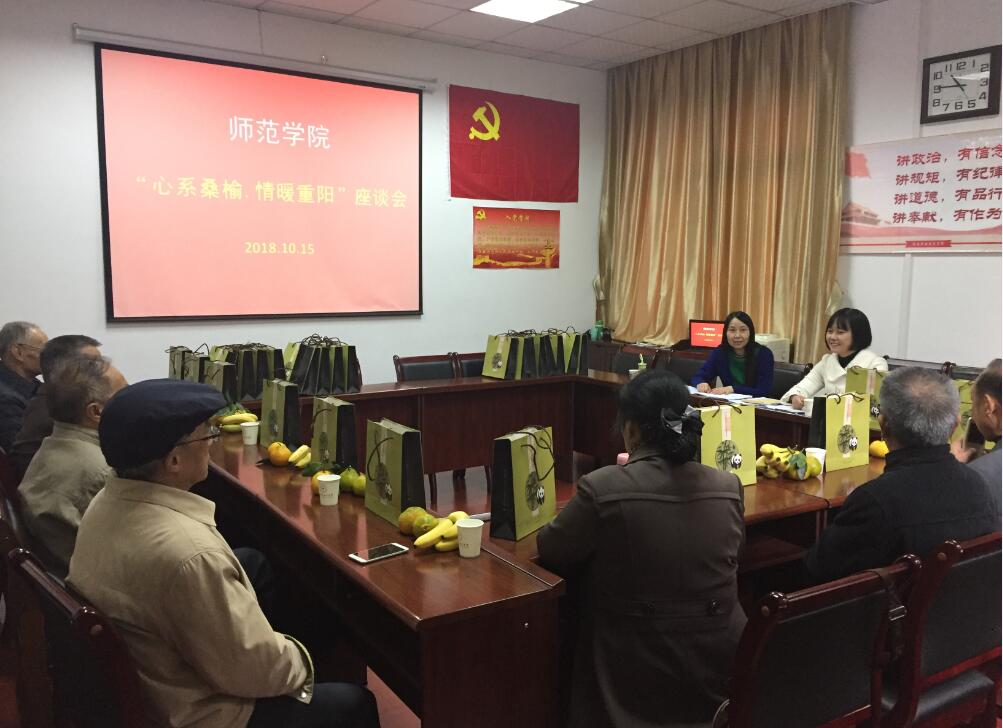 【本网讯】10月16日,师范学院在育才路校区行政楼B210会议室举行了2018年师范学院退休职工庆重阳活动。师范学院院长孙舫南、副院长陆小路与及退休教职工12人参加了活动。